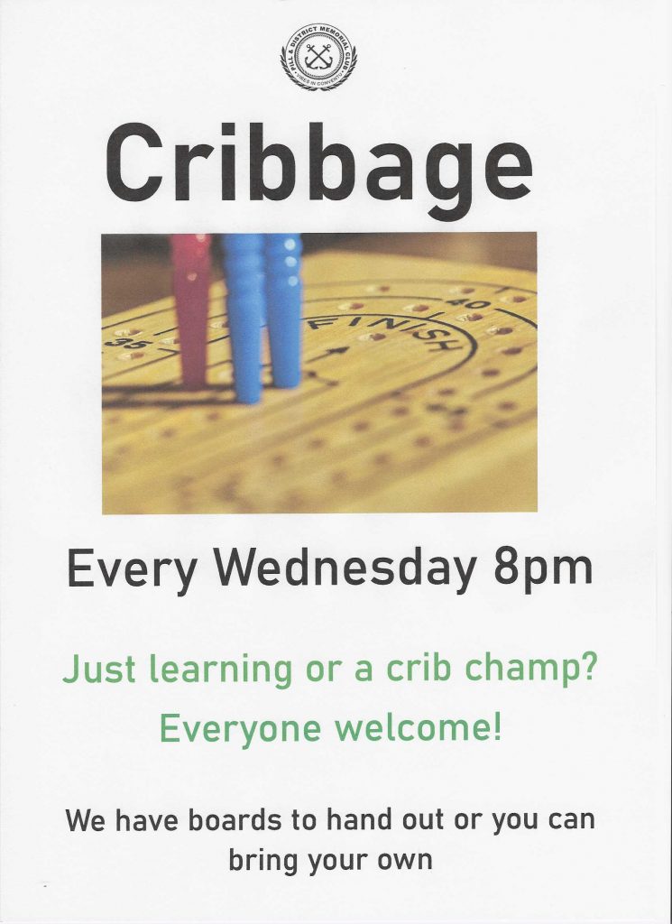 Cribbage every Wednesday 8pm at Pill Memorial Club. A game that keeps your brain sharp:Â challenges your mind & forces…